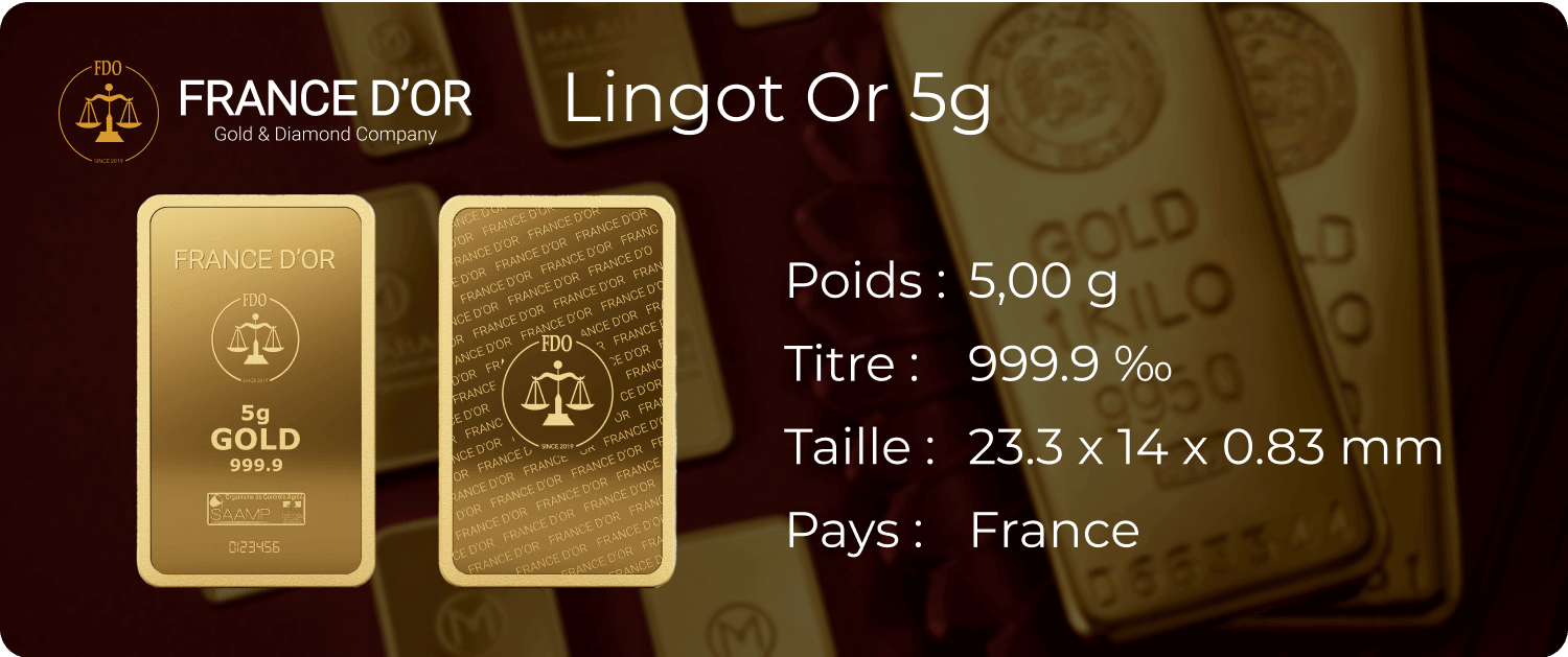Contactez FRANCE D’OR dès aujourd’hui pour en savoir plus sur nos lingots d’or 5 g et sur la manière dont ils peuvent vous aider à diversifier vos investissements.