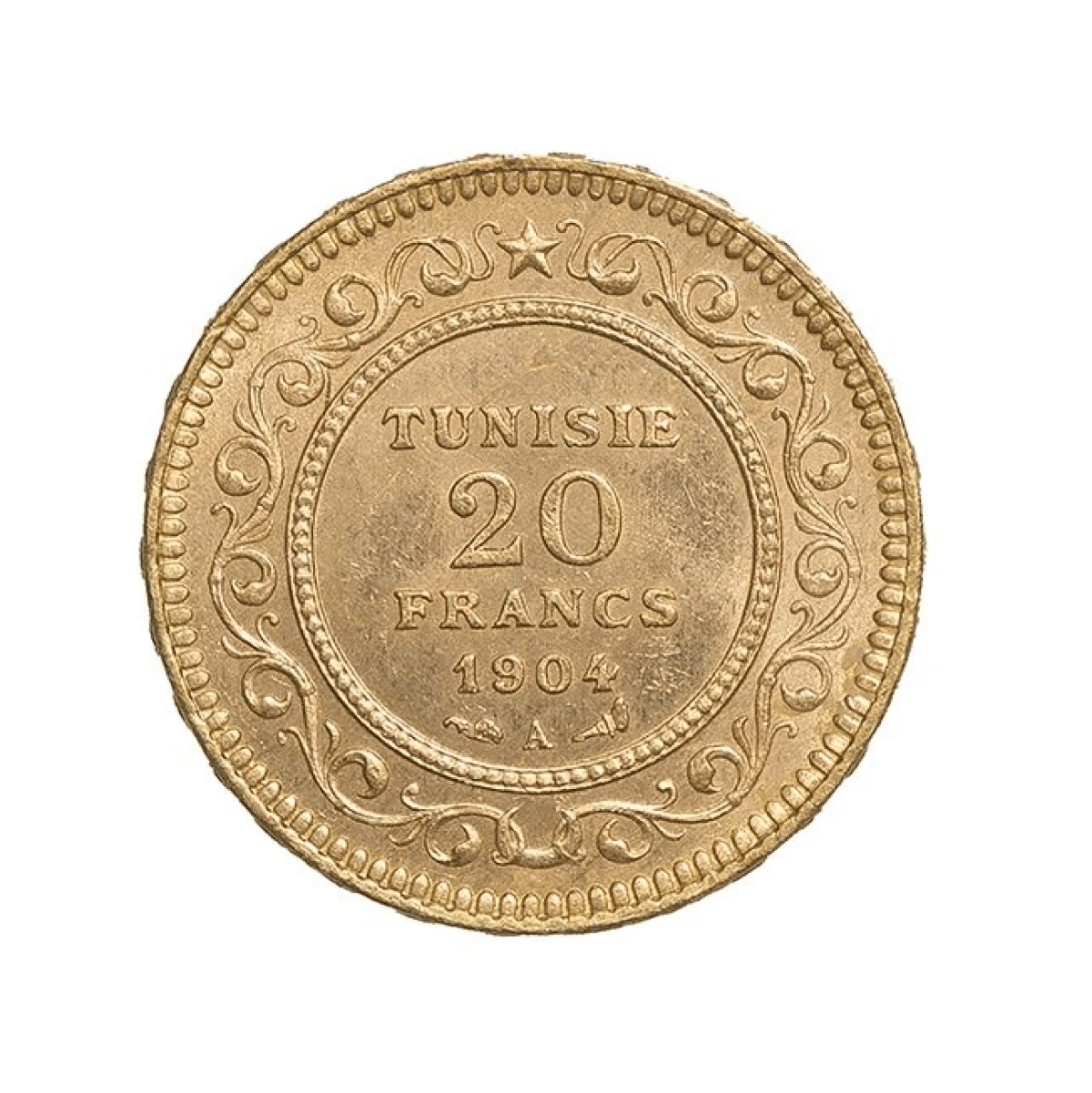 La pièce d’or tunisienne de 20 francs est une pièce de collection. Cette pièce peut raconter une histoire intéressante de la lutte de trois États européens pour le contrôle de la Tunisie.